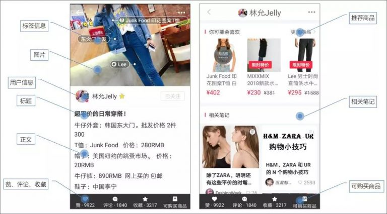 小紅書(shū)所有的內(nèi)容結(jié)構(gòu)都非常清晰,包括用戶(hù)信息、圖文、標(biāo)簽、標(biāo)題、**、評(píng)論、收藏等等,還推薦相關(guān)的商品。