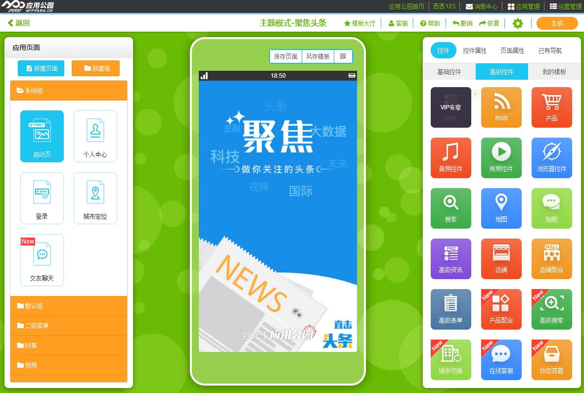 這就是新興起的應用公園APP在線制作平臺,以共享模式運行。把常見的APP功能鍵拆分為每一個獨立的APP功能,不懂技術的人,只需要把這些功能控件組合搭配一下就可以快速制作。